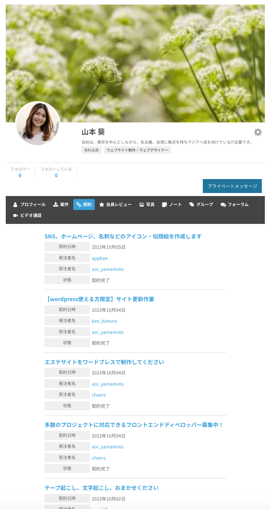 ヘッダー画像やプロフィール画像は必ず設定しましょう。情報が充実しているほうがマッチングには有利です。案件がなくても、プロフィールを見て直接コンタクトしてくる人もいます。
