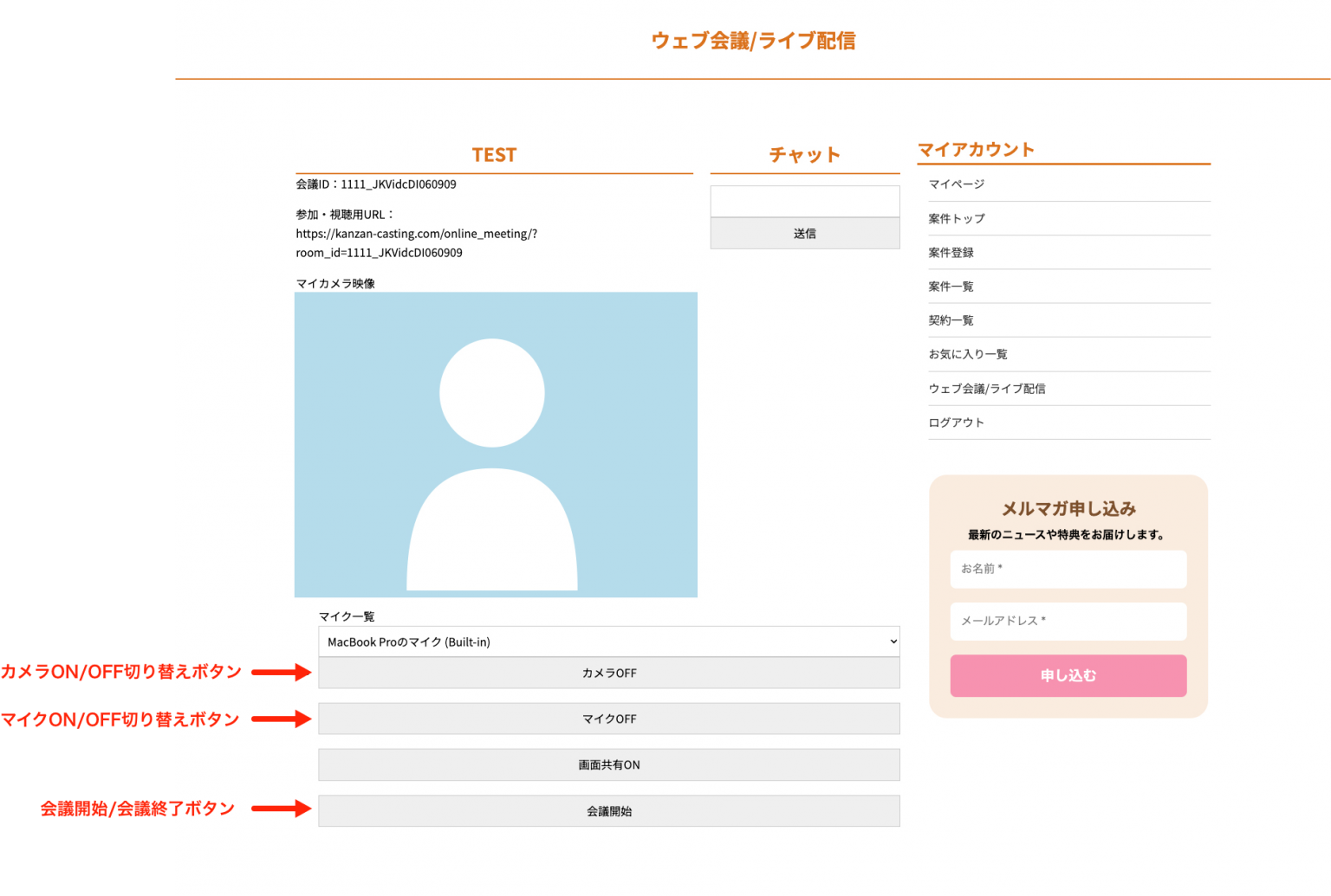 ウェブ会議 / ライブ配信画面